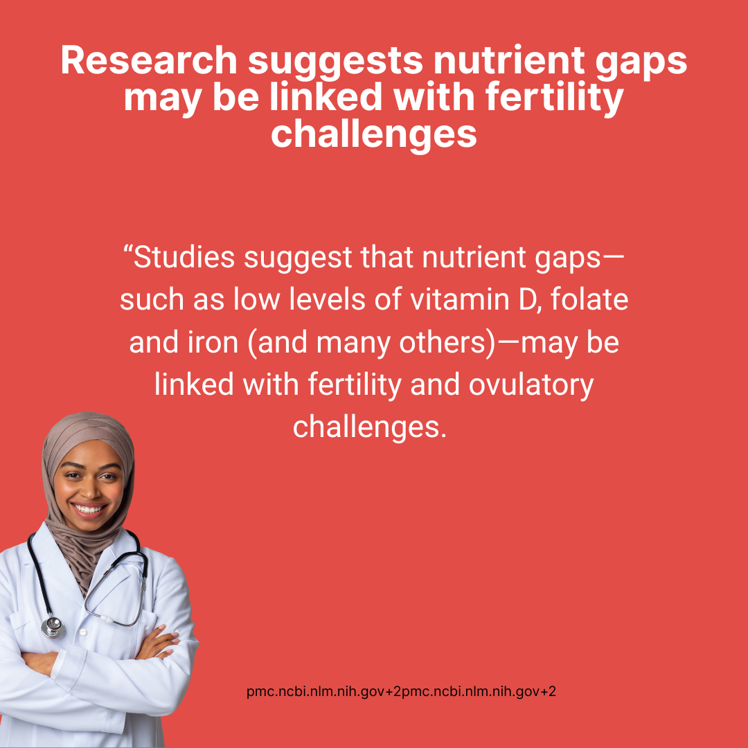 Backed by science: nutrients like methyl folate, vitamin D, CoQ10, omegas show promise in fertility support.
